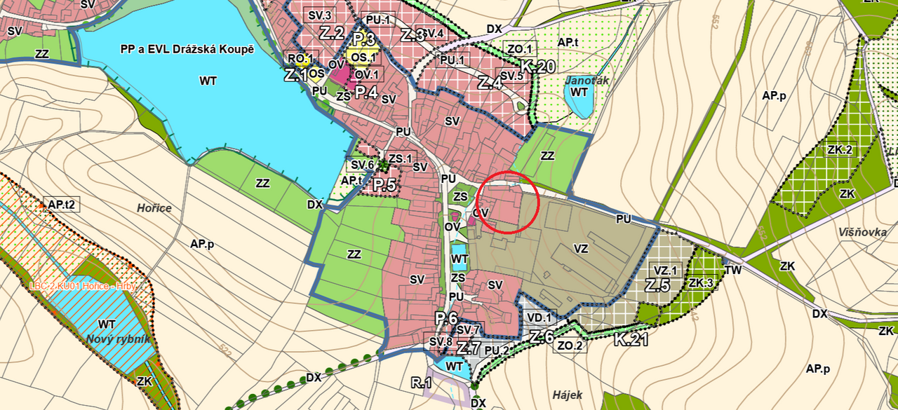 - rozhlehlý pozemek se stavebním potenciálem: celková plocha 2 576 m (zahrada a zastavěná plocha) je v územním plánu vedena jako plocha smíšená obytná venkovská. Pro nového majitele to znamená obrovskou výhodu pozemek lze využít pro další výstavbu nebo jej rozdělit a zhodnotit jako samostatnou stavební parcelu